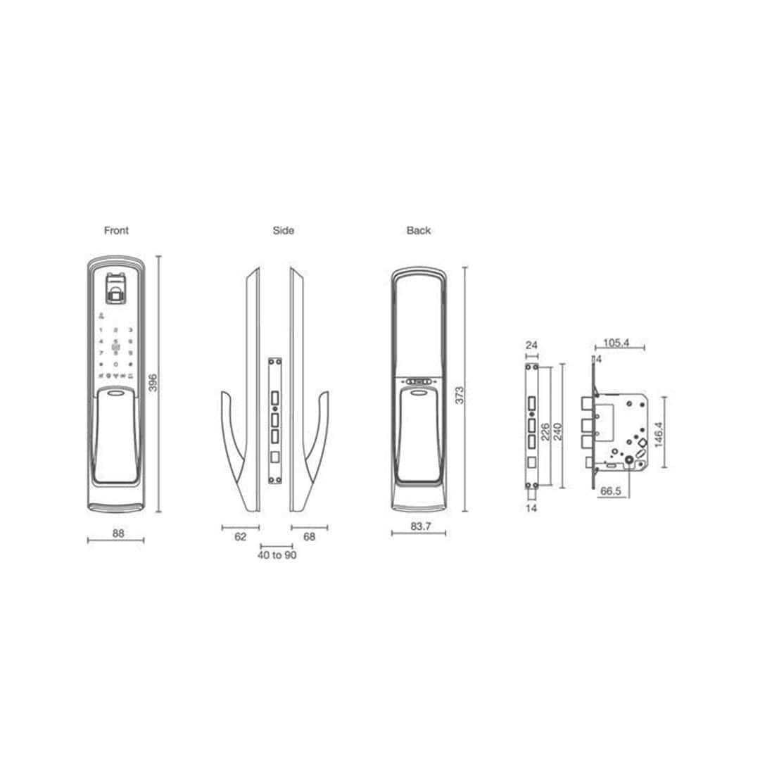 | Door thickness: | 40 – 90mm |