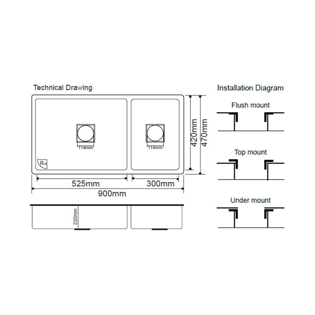 Overall Dimension: 900mm x 470mm