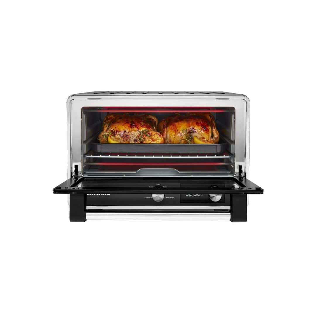 – 【Large Capacity】 Bottom control panel design releases more space and fits a 12” pizza or 2 small whole chickens